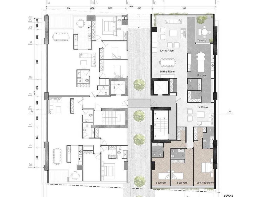 طبقات ۹ و ۱۰: هر طبقه شامل یک واحد تک‌واحدی با متراژ ۴۱۰ مترمربع است که فضایی وسیع و لوکس برای خانواده‌های مرفه فراهم می‌کند.