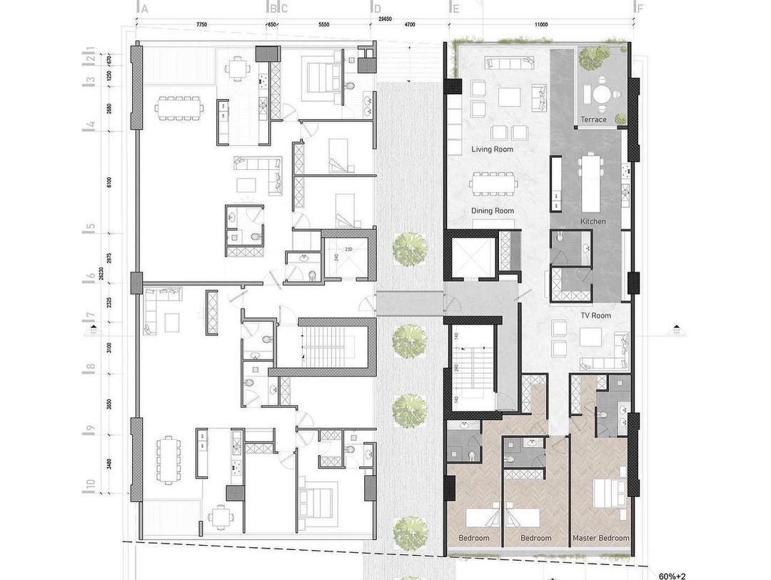 این تنوع در متراژ واحدها، پاسخگوی نیازهای مختلف از خانواده‌های کوچک تا خانواده‌های بزرگ است و گزینه‌ای ایده‌آل برای کسانی که به دنبال فضایی وسیع و راحت هستند، ارائه می‌دهد.